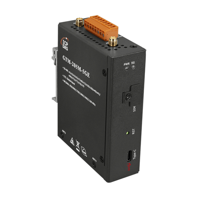 GTM-205M-5G 是一款具有 USB Super Speed Plus 介面的工業級 M2M 數據機。支援5G NR n1/n2/n3/n5/n7/n8/n12/n20/n28/n41/n66/n71/n77/n78/n79 和 FDD Global Bands 和 WCDMA B1/B2/B3/B4/B5/B6/B8/B19。GTM-205M-5G 利用便利的3G/4G/5G 網路來監控遠端設備、各種流量計或即時的遠端控制。內建 TCP/IP stack,只需搭配簡單的控制命令即可連線上網。GTM-205M-5G 的特色在於支援標準 AT 指令,可以輕易搭配多種 PLC 和 PC 來實現簡訊的收送和 5G/4G/3G 連線。