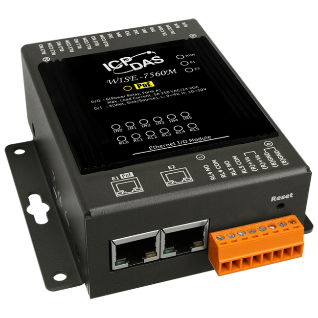 WISE-7560M提供6組DI通道及6組DO Relay通道。透過內建的IF-THEN-ELSE邏輯規則執行引擎,WISE-7560M可提供I/O通道監控、計時器/排程時序控制、E-mail/CGI命令發送等功能,可運用於自動化監控應用中。此外,WISE-7560M同時支援Modbus TCP及MQTT通訊協定,可與SCADA、IoT系統進行無縫整合。